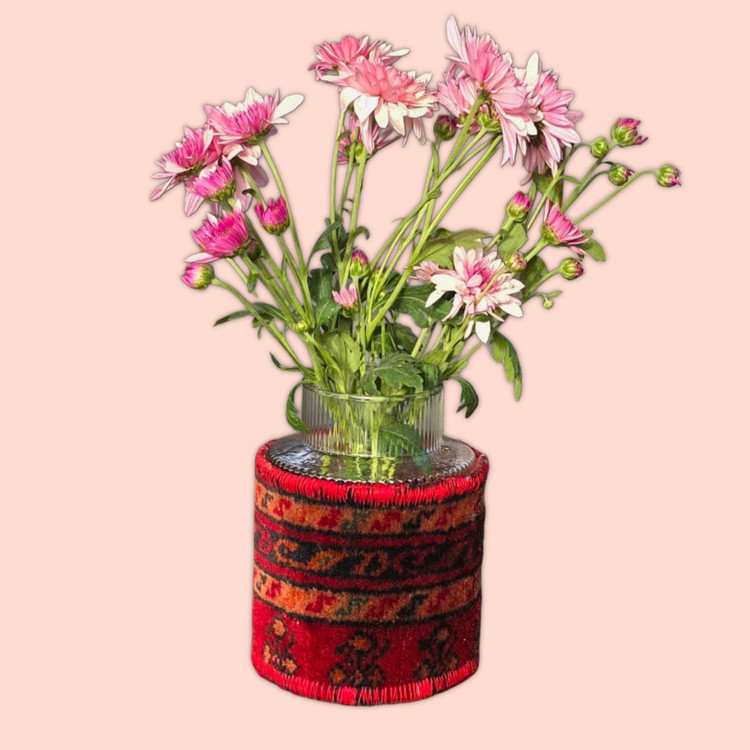 گلدان های شیشه ای با روکش قالی دستبافت